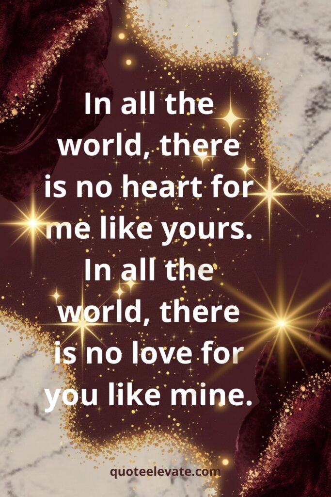 - “In all the world, there is no heart for me like yours. In all the world, there is no love for you like mine.” – Maya Angelou