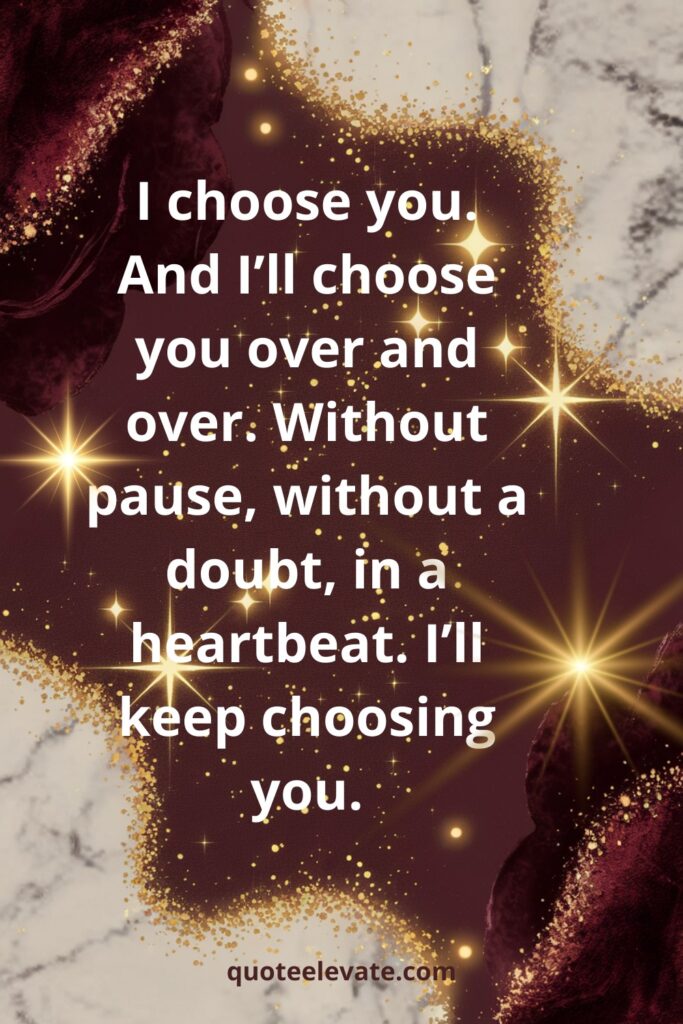 - “I choose you. And I’ll choose you over and over. Without pause, without a doubt, in a heartbeat. I’ll keep choosing you.” – Unknown