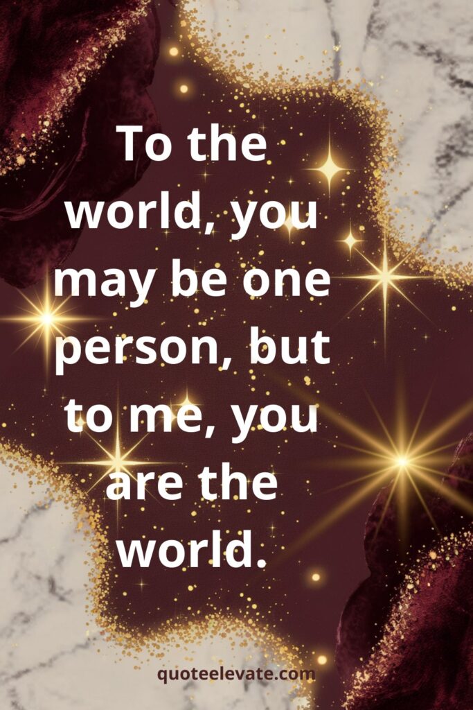 - “To the world, you may be one person, but to me, you are the world.” – Unknown