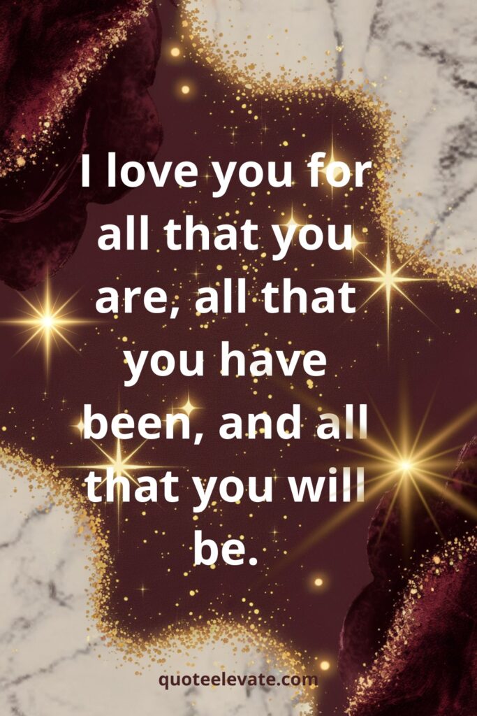 - “I love you for all that you are, all that you have been, and all that you will be.” – Unknown