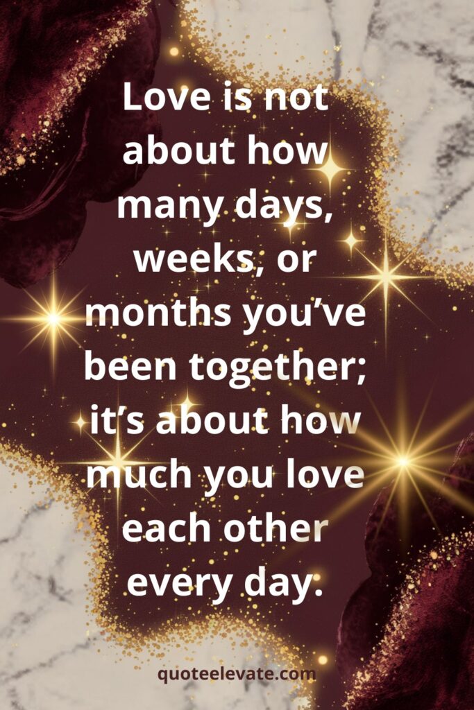 - “Love is not about how many days, weeks, or months you’ve been together; it’s about how much you love each other every day.” – Unknown