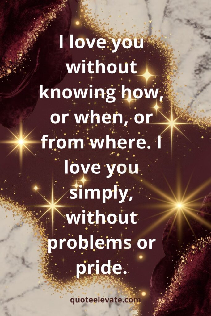 - “I love you without knowing how, or when, or from where. I love you simply, without problems or pride.” – Pablo Neruda