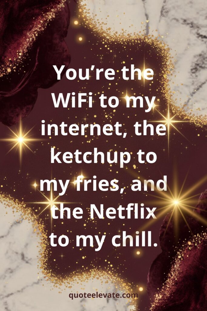 - “You’re the WiFi to my internet, the ketchup to my fries, and the Netflix to my chill.” – Unknown