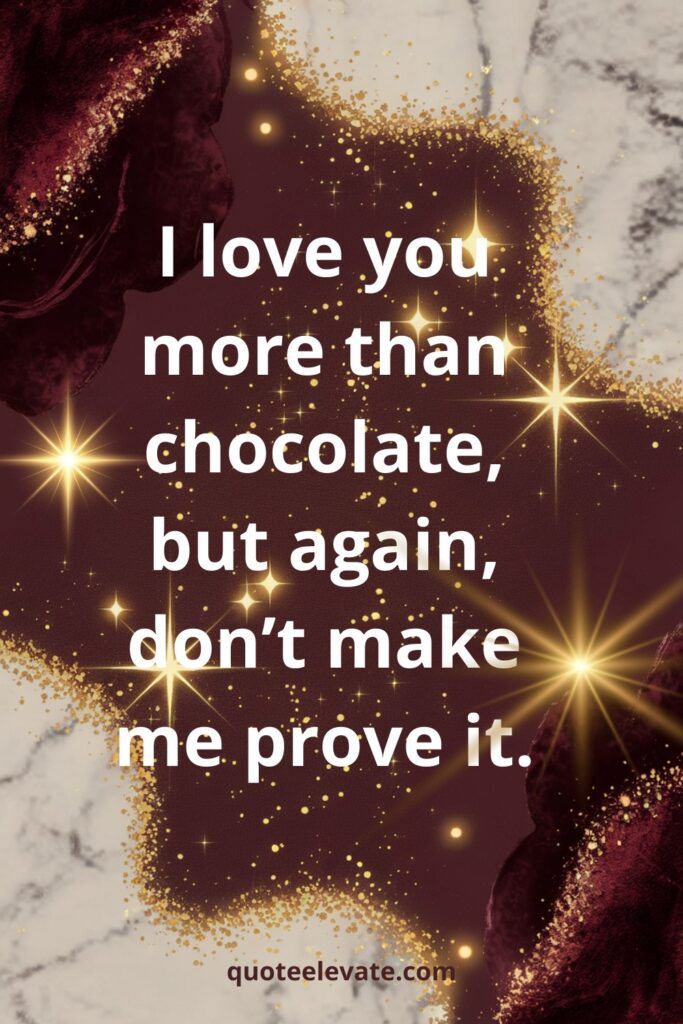- “I love you more than chocolate, but again, don’t make me prove it.” – Unknown
