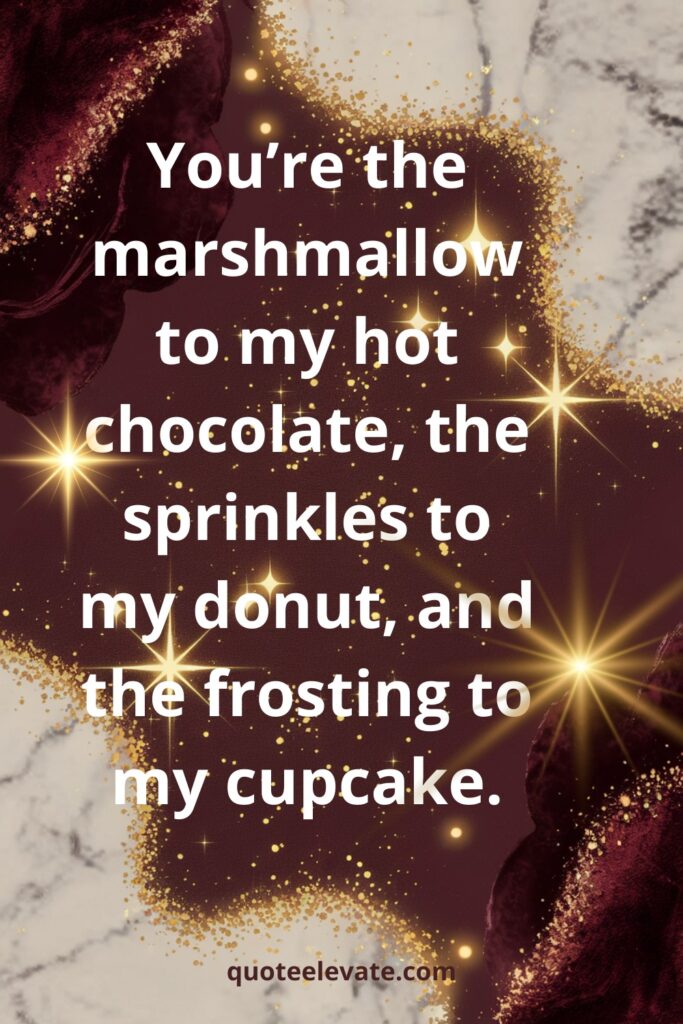 - “You’re the marshmallow to my hot chocolate, the sprinkles to my donut, and the frosting to my cupcake.” – Unknown