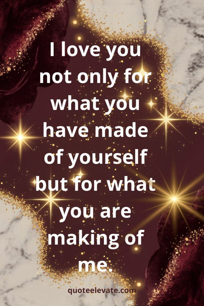 - “I love you not only for what you have made of yourself but for what you are making of me.” – Roy Croft