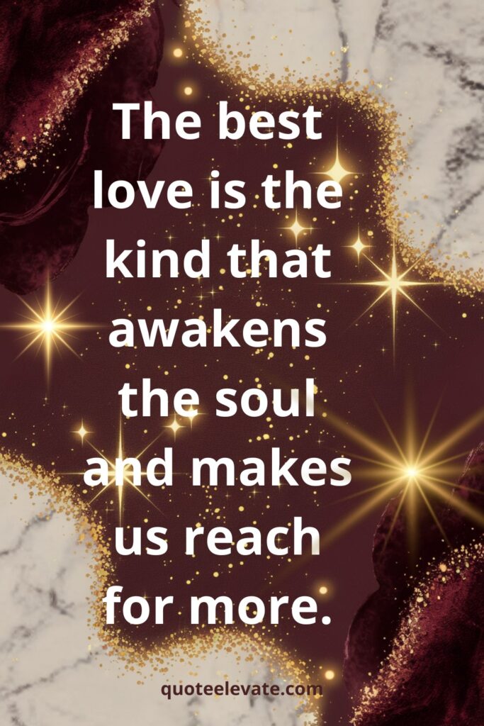 - “The best love is the kind that awakens the soul and makes us reach for more.” – Nicholas Sparks