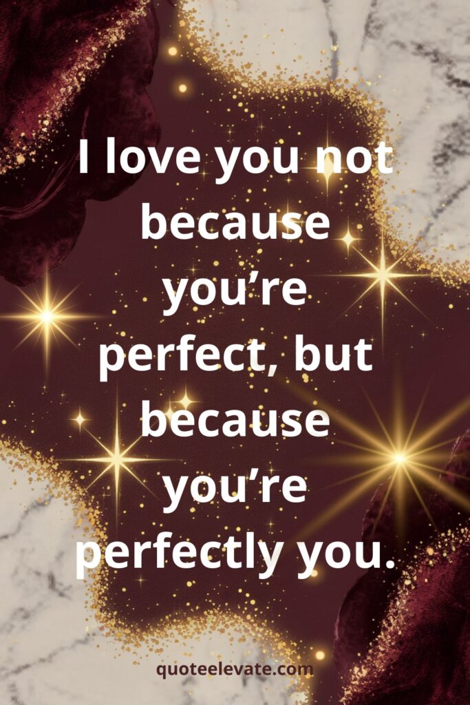 - “I love you not because you’re perfect, but because you’re perfectly you.” – Unknown