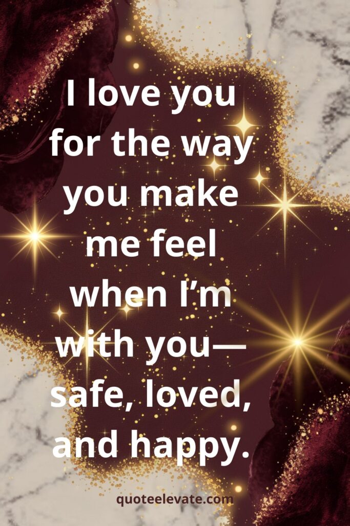 - “I love you for the way you make me feel when I’m with you—safe, loved, and happy.” – Unknown