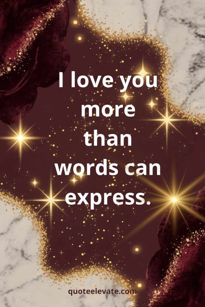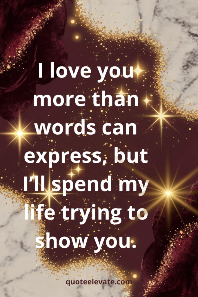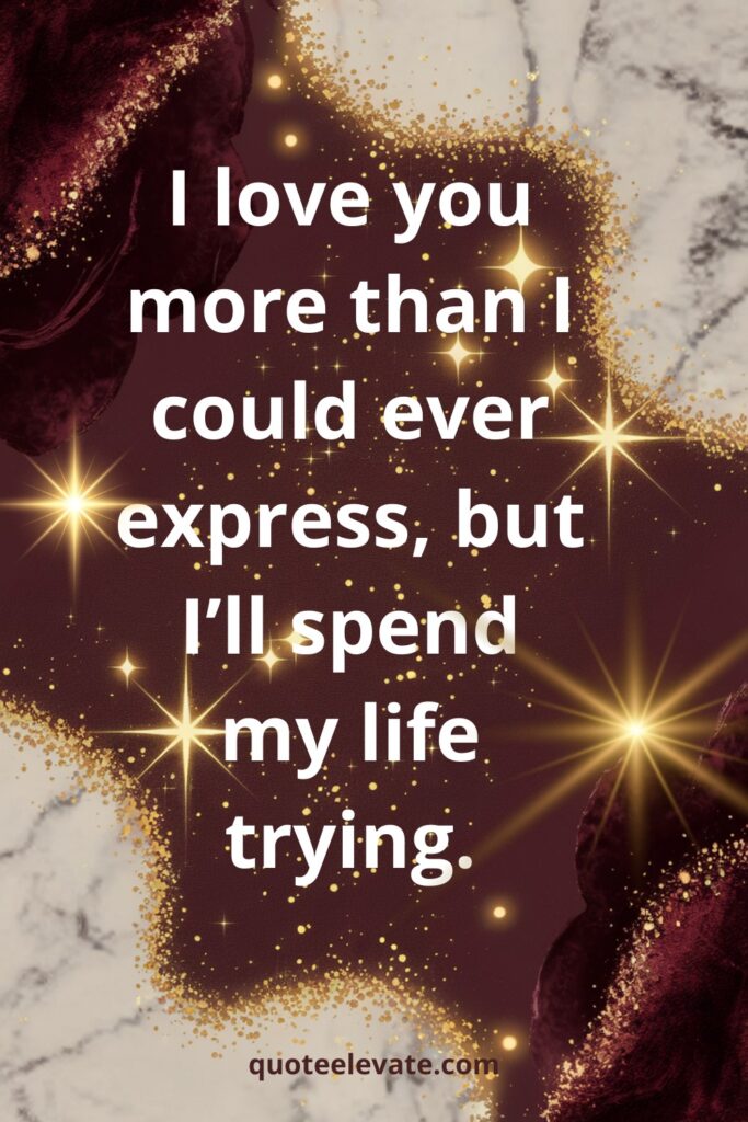 - “I love you more than I could ever express, but I’ll spend my life trying.” – Unknown