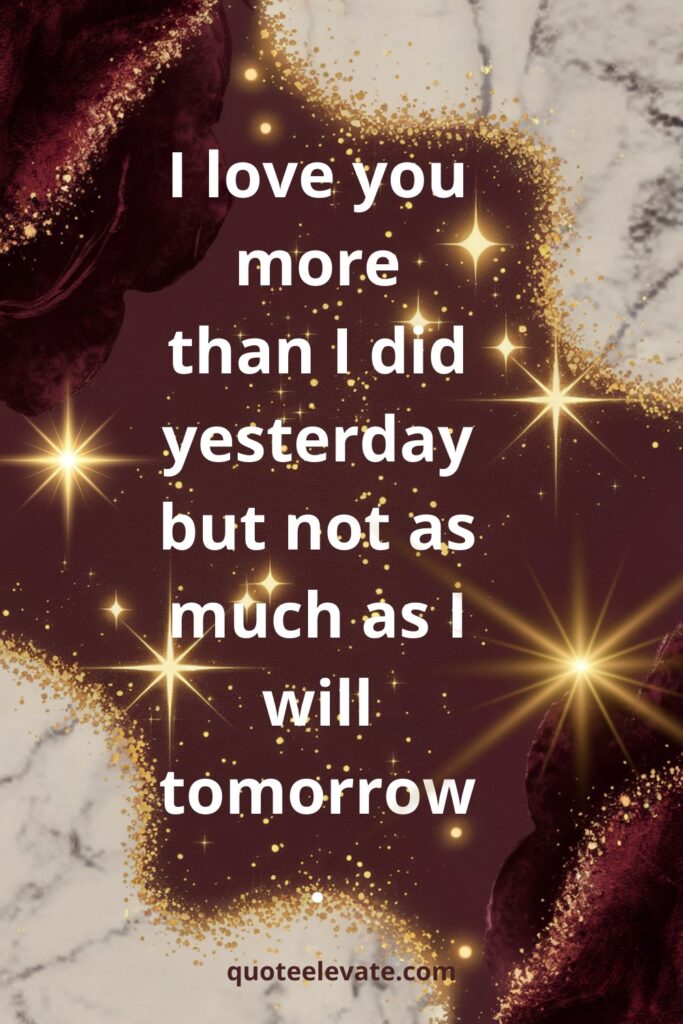 - “I love you more than I did yesterday but not as much as I will tomorrow.” – Unknown